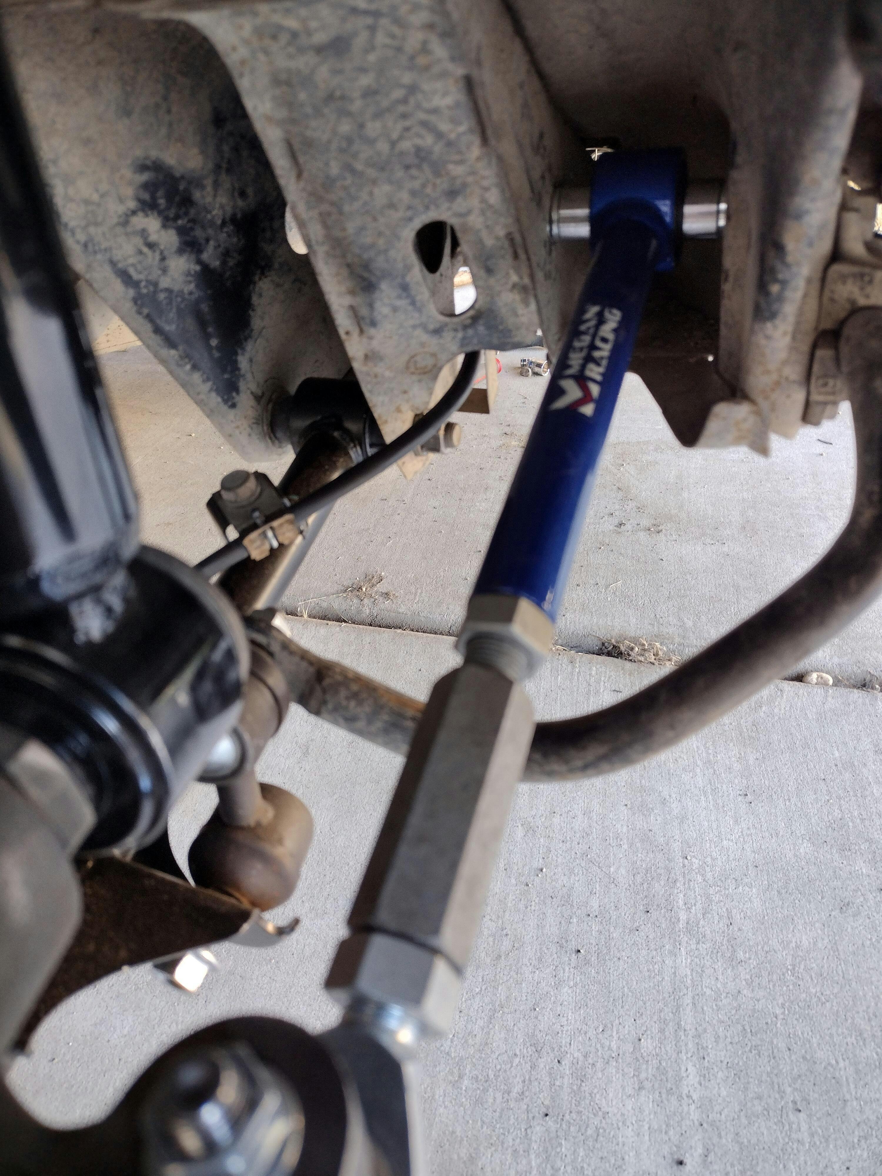 Megan Racing suspension arms are designed to correct the suspension geometry created when a vehicle’s ride height has been changed from stock. Keeping proper alignment on your vehicle is very important. When a vehicle is lowered the geometry of the suspension is changed affecting the surface contact your tires are able to make with the road. For maximum handling, you want as much surface contact as possible, as well as the ability to change these settings to meet any road condition. Megan Racing suspension arms are designed to do just that. Give you the adjustment capability you need to correct your alignment and give you maximum control over the handling of your vehicle. Whether you are chasing track times or street cred, Megan Racing has you covered.